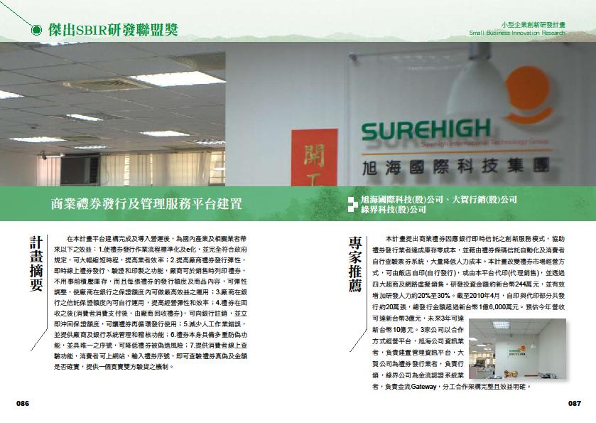 獲選99年經濟部技術科專績優計畫「傑出SBIR研發聯盟」獎項。
