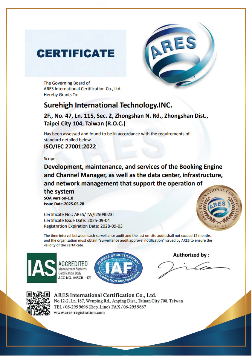 旭海國際科技股份有限公司已於 2025 年 9 月 4 日正式通過 ISO/IEC 27001:2022 資訊安全管理系統(ISMS)驗證,由亞瑞仕國際驗證公司授予證書。 這項國際級驗證,代表我們在資料保護、風險管理與資安治理的努力獲得專業肯定。